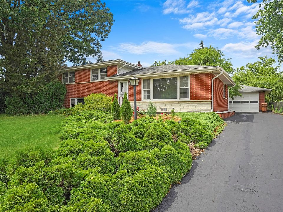 LOVEL SPLIT LEVEL ON A PRIVATE WOODED CORNER LOT. ACCOMMODATES 3 SPACIOUS BEDROOMS ON THE SAME LEVEL. BRAND NEW LUXURY VINYL FLOOR FLOWS THROUGHOUT THE MAIN LEVEL WERE INSTALLED IN 2018. DECORATIVE FAUX TIN CEILINGS ACCENT THE LIVING AND DINING ROOMS. A WIDE CHICAGO WINDOW AND WINDOWS ON EACH SIDE OF THE DINING ROOM BRING IN LOTS OF NATURAL LIGHTING. A SPACIOUS FAMILY ROOM ACCOMMODATES A BAR AREA AND GLASS DOOR ENTRY FOR COZY RELAXATION. EAT-IN KITCHEN SS FRIDGE AND STOVE ARE JUST 2 YEARS OLD. FULL-SIZE LAUNDRY IS LOCATED ON THE LOWER LEVEL EQUIPPED WITH A VINTAGE CONCRETE SINK AND FREEZER. HARDWOOD COVERS THE FLOORING UPSTAIRS AND GORGEOUS BATTON BOARD ON THE CEILING. FULLY FENCED WOODED YARD HAS A WIDE GATE OPENING FOR UTILITY ACCESS AND SITTING AREAS UNDER TALL TREES AND PATIO WHERE TABLE SETS, ADJUSTABLE PARK BENCHES AND STORAGE CHESTS WILL STAY. THERE IS A HALF BATH ON THE MAIN LEVEL ENHANCED WITH PLANK WALL BOARDS AND A FULL BATH UP WITH A HUGE STORAGE CLOSET. LONG DRIVE LEADS TO AN ALL-BRICK AND BLOCK 2 CAR GARAGE WITH 5 PANEL TALL OVERHEAD DOOR AND CHIMNEY. ENTIRE HOME WAS PAINTED IN 2020, WALLS, TILES,AND CEILING TILES ALSO IN 2020. ROOF WAS REPLACED IN 2002 AND TUCKPOINTING WAS 2002. FURNACE, AC, WATER HEATER AND INTERIOR 6 PANEL WOOD DOORS WERE REPLACED IN 2014. FANTASTIC LYONS TOWNSHIP HS LOCATION.