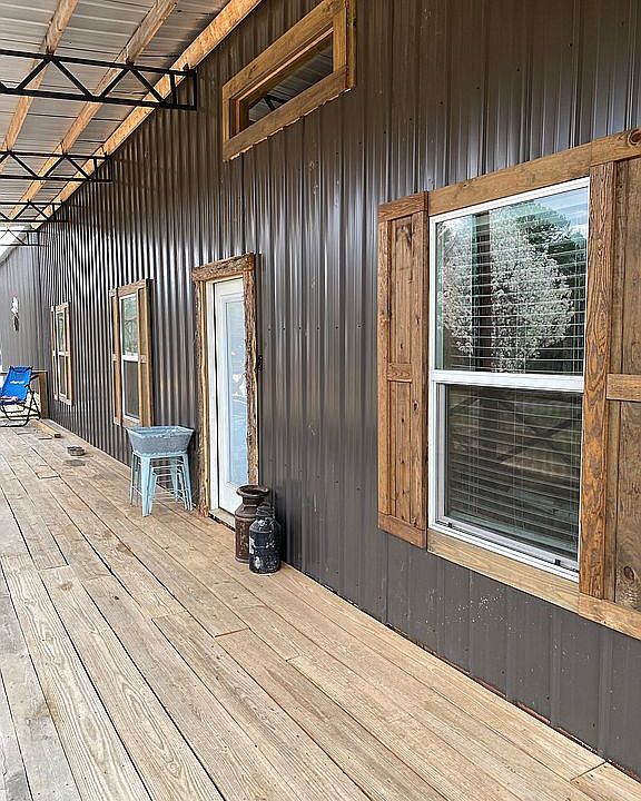 This home is located on 6 acres and was built in 2020! You'll love the spacious lot and the fully stocked pond with a built in pier! The house has a large wrap around porch and a big back patio. The property also has a shop, a well, a storm shelter and a large garden. This home offers an attached 3 car garage with 3 established driveways, and it has two 50 gallon water heaters & city water. Inside, you'll fall in love with the beautiful wood finishes throughout the home, and the stunning granite countertops! This home is wheelchair accessible, and the high ceilings make it feel open and spacious. The main bathroom offers a Bluetooth speaker and 3 showerheads in the shower, & there are barn doors throughout the home to complete the barn aesthetic!