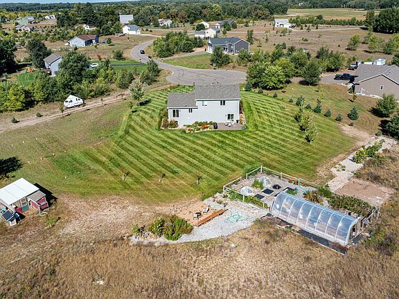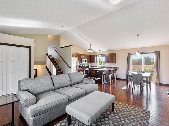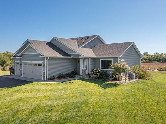 Welcome home to your new acreage oasis! This 4-level home rests on 2.5 acres at the end of a cul-de-sac in Becker township. Becker township has so much to offer with its 1000’s of miles of trail systems. Enter through the foyer into the open concept main level with beautiful hardwood floors. Vaulted ceilings make this home feel bright and open. Kitchen features stainless steel appliances, upgraded tile backsplash and breakfast bar. The hardwood floors continue upstairs to the 3 bedrooms. The primary bed is spacious with its private bathroom and walk-in closet. The lower levels offer additional room to grow. Customize to your liking with bedrooms, a family room, or whatever your heart desires. Walkout Lower levels offer additional space for family room and additional bedrooms. Walk out to the patio and enjoy the sprawling acreage. In addition, there is a greenhouse, chicken coop and firepit patio and natural prairie flowers in the back part of the acreage. Stunning and move in ready.