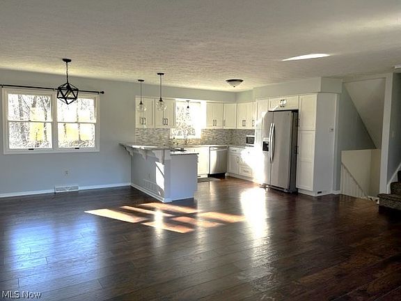 Beautiful and Pristine! Fully remodeled 3 bedroom 2 full bath 4 level split in wonderful area! Private Setting backing to woods! Beautiful wooded views throughout home. Open Living/Dining and fully applianced Kitchen. Beautiful dark wood floors contrasting with white cabinetry and trim. 2 electric fireplaces stay. 3 bedrooms upstairs with updated bathroom. Main hall bathroom with access to master bedroom. The lower level has sliding doors out to the newer, maintenance free deck overlooking the woods, an office/flex space with full, updated bathroom. The basement is very clean with plenty of shelving and washer/dryer that stay with the home. Updates include but not limited to all new carpet, flooring, paint, bathrooms, new white kitchen with all appliances, furnace, a/c, water tank, roof, windows, deck and more 2018. The Towpath is just down the road as well as easy access to route 21.