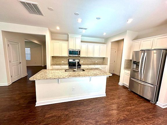 The spacious gourmet kitchen is the heart of the home, featuring a large center island, ample countertop space, and an inviting dining area that flows seamlessly into the living room perfect for entertaining guests or enjoying quality family time.