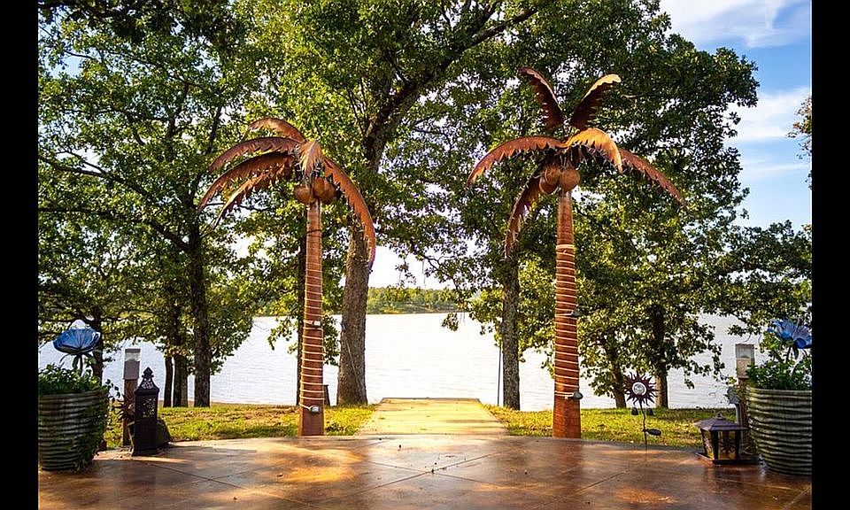 ONE OF A KIND LAKEFRONT ESTATE AT LAKE EUFAULA! This home has all the luxury amenities! A huge gourmet kitchen with granite countertops, an island and eat up bar that opens to a large living room with wood burning stove. Designer master bedroom with electric fireplace, bath with 4x8 walk-in shower, glass sinks, and curved tub. 5 acres with 329 ft of waterfront and dock approved. Patio with pavilion, hot tub, and 2 fire pits! Game room, 4 car garage, a 30x50 insulated shop with heat and A/C. Call to See!