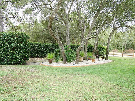 PRIDE OF OWNERSHIP!! ALL ON .88 ACRES! 4/2/3 Screened front entry. Tiled foyer, large living & dining area. Split plan. Large master bedroom & updated bath w/soaking tub & separate shower. Huge walk-in closet. Chef's Kitchen has large island, designer sink/faucet, stainless steel appliances incl. double oven, & wood cabinets w/pull-out drawers. Breakfast bar, Dining nook for easy entertaining. Travertine tile & crown molding. 9' Glass French doors open into 4th bedroom now used as home office - could be den/bonus room. Inside laundry w/wood cabinets. Sliders to private screened lanai w/room for pool or hot tub. Freshly painted interior/exterior. Fenced yard, shed, irrigation system & hurricane shutters. Electric gate opens to beautifully landscaped yard. Truly a ''Forever Home''! Call toda