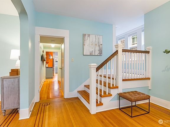 Built in 1912 on a quiet tree-lined street, old world charm meets modern updates. A covered front porch enters the main level with oak inlaid floors, formal living&dining rooms, fireplace, family room & half bath.Updated kitchen leads to a low-maintenance sunny garden, 2-car garage, and, above it, a bright studio & half bath. The second floor has the primary suite, 2 additional bedrooms, full bath, and office/nursery. The 3rd floor presents another suite with 3/4 bath, plus a 5th bedroom/playroom/office.A finished lower level has high ceilings, a media room, 3/4 bath, great storage, laundry & flex space. Just blocks to restaurants, shops, coffee, schools, parks, museums. This is the North Capitol Hill home that you have been yearning for.