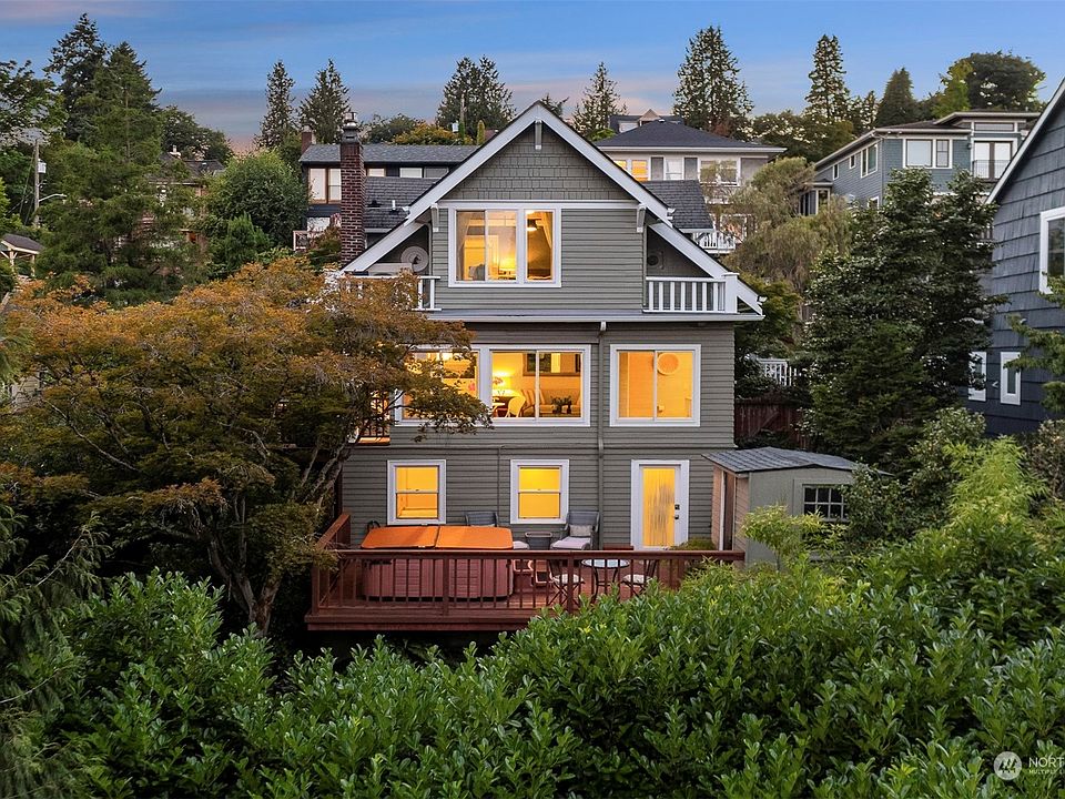 Timeless allure & original charm with modern updates in this highly sought-after Madrona Craftsman home. 3 large bedrooms & 2.5 bathrooms with lovely outdoor spaces & unobstructed treeline views filtering Lake Washington. This inviting retreat showcases a beautifully updated kitchen with custom cabinetry, SS appliances, gas cooking & a breakfast nook. New white oak hardwood floors throughout. An ideal space for entertaining with the open dining & living fitted with a custom built in bar & wine fridge, with an abundance of natural light & large deck. Located just 3 blocks from Madrona Neighborhood core offering trendy boutiques & renowned restaurants. 1 block Madrona Park, a lakefront beach, & walking distance to Leschi amenities.
