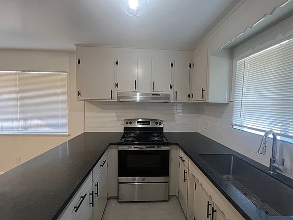 Recently remodeled 2-bed, 1-bath townhouse with modern fixtures and a gorgeous bathroom. Brand new roof, blinds, garage motor, electrical, paint, ceiling fans, you name it! Digital keypad door lock. Unit still has some original hardwood flooring. Small yard that the landlord plans to upgrade. Home has a single car garage space as well as a driveway spot for parking. Unit includes stove, refrigerator, washer and dryer. Move in ready!