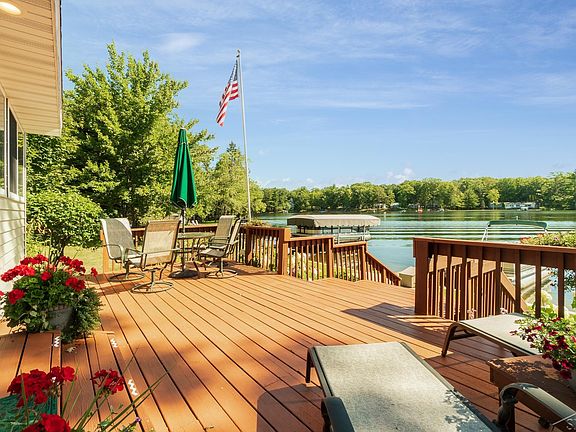 LOVE LAKE LIVING? This home has the updates done so you can enjoy living on lake George. This desired all sports lake is 525 acres. The large kitchen has new cabinets and countertops, 2 pantries and the appliances stay. Furnace and center air is BRAND NEW. Master bedroom has a nice bathroom with a walk in shower. 2 bedroom and 2nd full bath is on the main floor. Upstairs loft overlooks the family room with 2 twin built in beds with storage under them. Large deck to enjoy lake views. Generac and security system.