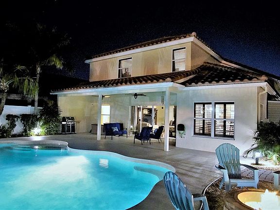Immaculate 4 Bedroom, 3 bath, 2 car garage home with amazing custom salt system pool, expansive lanai & paver fire pit area & walkways on tropically landscaped fully fenced lot in the heart of Wellington! Updated kitchen with granite counters & island, stainless steel appliances, tumble stone backsplash, huge pantry, large family room and lanai viewing pool area. Huge master suite with dual walk in closets & total upgraded master bath. 1 bedroom and full bath are on first floor. Additional features: 8 x 6 storage shed, custom plantation shutters, security system with 3 cameras, expanded drive way. Located in desirable community with lake front park, top rated Wellington schools, parks & amphitheater. Close to Polo, show grounds, shopping & dining. Minutes from PBIA & area beaches.