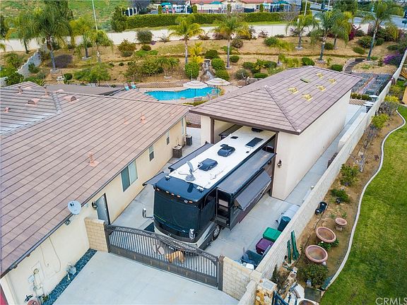 The exclusive community of Norco Hills, greets you as you arrive to your estate. This stunning 4 bedroom 5 bathroom, each appointed with a full bathroom and resort-like yard exudes warmth and elegance. Grand Single-story and gorgeous hardwood floors draw you through the door and welcome you inside. The formal living and dining rooms have been embellished in rich details with 10â ceilings, chandelier lighting, tall double doors which lead to the outdoor and are ready for every occasion. The family room is inviting and offers a relaxing place to relax in front of the custom stone fireplace to the sound of modern tranquility. Fully appointed kitchen makes cooking a joy with all Viking appliances and the open concept floor plan provides the perfect place for family to gather. The luxurious master suite with retreat will not disappoint. Large and spacious laundry room. On those beautiful California days/nights, step outside to your gorgeous backyard through 3 tall French doors into a covered patio complete with ceiling fans and lighting. You will cherish the moments in your own private paradise complete with a crystal blue pool, a gorgeous waterfall rock feature. Prepare a meal on your gas BBQ while friends relax by the custom stone fireplace. 50âx20â RV Garage with 16â Automated Commercial Roll up doors, garage offers 50 Amp Power connection, work bench and more. Designed Vegetable garden for the organic family. You can get all of this In Horse Town USA-zoned for horses.