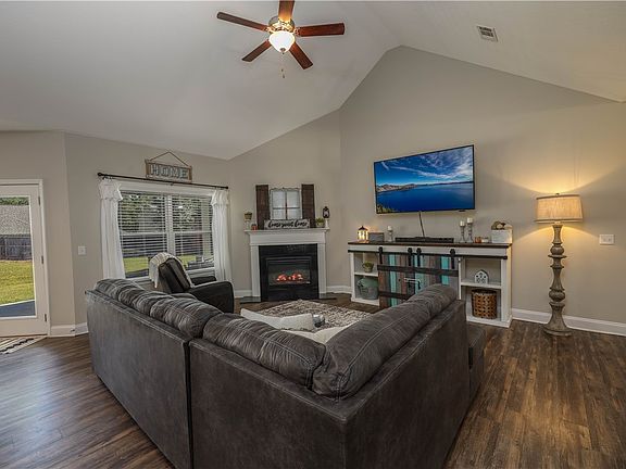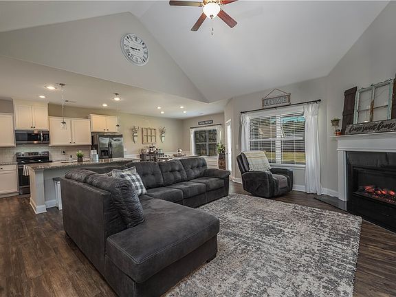 This immaculate 4 Bedroom/2 Bathroom craftsman style ranch home features a large foyer, family room with vaulted ceiling and corner electric fireplace, gourmet kitchen with black stainless appliances, oversized island, walk-in pantry, white painted cabinets and granite countertops, the master bedroom has a tray ceiling and the master bathroom features 2 walk in closets, a soaking tub and separate shower. Outside includes a large covered patio with extra concrete (perfect for the grill) and is fenced.
