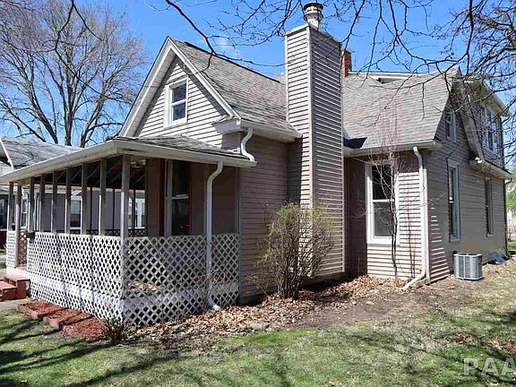 Spacious 3 bedroom, 2 bath home boasts some splendid & nostalgic features including wood floors, natural woodwork, pocket doors, built-in hutch & bookcase plus covered front porch. Homeowner has made many recent improvements... roof, central air (approx. 2 years) remodeled upstairs bathroom (2018), carpeting 2019, kitchen cabinets and back splash. Most windows have been updated. Wonderful bonus room can be used as playroom, exercise room, craft room or storage. Convenient main floor laundry room and large 2 car garage. Walking distance to Pekin Rotary Park. Come on HOME!