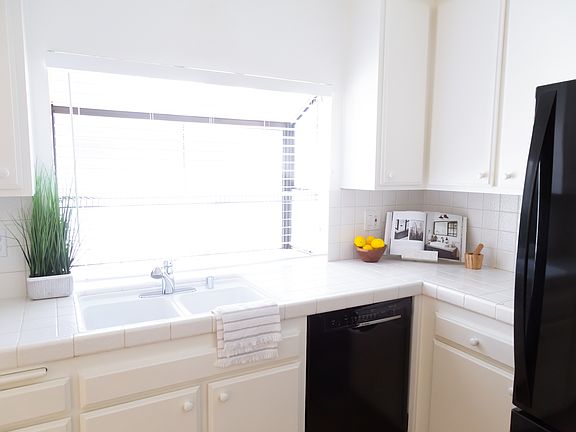Welcome to this clean and inviting two bedroom two bathroom home! Upon entering you will notice high ceilings and plenty of natural light, creating a warm and open atmosphere. The kitchen features plenty of cabinet space, dishwasher and a convenient breakfast bar, perfect for casual meals or extra prep space. Leading down the hall you will find two generously sized bedrooms. The primary bedroom includes a giant walk-in closet and an en-suite bathroom with a double sink vanity. Step outside to your own private patio, ideal for relaxing or entertaining. Additional features include a dedicated laundry room and a single-car garage with extra storage. Located in a wonderful neighborhood, this community offers fantastic amenities, including a sparkling pool and spa. Centrally located, you're close to everything you need. Don't miss outschedule your showing today!