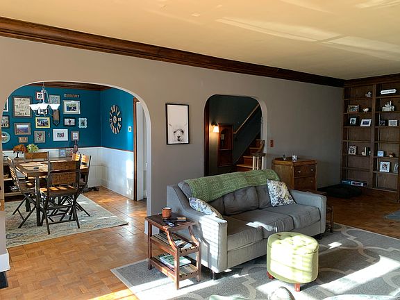 You must come see this charming, 1930's home that has been updated with many modern touches. From the spacious, welcoming great room with its focal point fireplace to the formal dining room with its large, rustic buffet table and wood accented walls, you will love the attention to detail that this home boasts. Built-in shelving adorns the french doors that lead to the sun room and wide, smooth crown molding frames each of the formal rooms on the main floor. Parquet wood, tile and original hardwood flooring add to the character of this lovely home. Upper level boasts two large bedrooms and a full bath as well as a third nonconforming bedroom or sleeping porch if you prefer. A large 2-car tandem garage is tucked into the lower level and you'll have additional off-street parking on the recently-improved, wide, concrete driveway. You will be surprised by the size of the fenced-in back yard equipped with deck, patio, pergola, fire pits, shed and large shade trees. Square footage per Assessor's Office