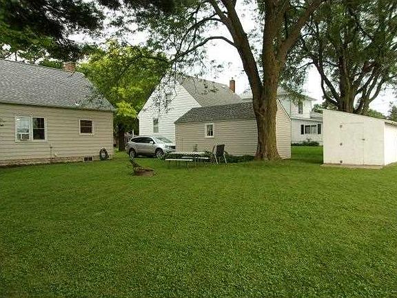 Cozy home great landscaping, nice backyard, fire pit, off alley parking, single car garage, storage shed. 2 bedrooms on main floor, updated bath, large upstairs bedroom with addt'l living space, walk-in closet. Oak floors on lower level. Newer chimney flue/liner. Newer roof, windows. Upper level has appr. 700 sq ft finished. Aluminum siding. Updated electrical service. Pool Table, bar in basement stay, (3) window A/C units stay. Some yard area has just been recently seeded. This home is move in ready.
