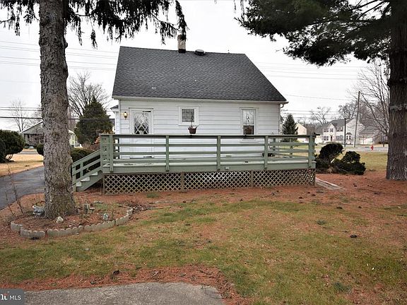Cute as a button! Adorable 3(or 4) bedroom dormered cape with basement, rear deck and garage in desirable Burlington Twp. A covered front porch entry takes you into the living room and adjacent chair railed dining room. Off the dining room is the kitchen with beautiful wood cabinetry and plenty of counterspace and full appliance package . A 12 x 11 sitting room, bedroom and full bath complete the first floor. The sitting room could easily be converted to a 4th bedroom as needed! Rear foyer leads to a 12 x 24 rear deck and surrounding mature pine trees. Upstairs are 2 bright, cheerful and generously sized bedrooms. A full basement and garage with asphalt driveway complete the property. located minutes from rt 130, rt 295, the turnpike and The Burlington Bristol Bridge.
