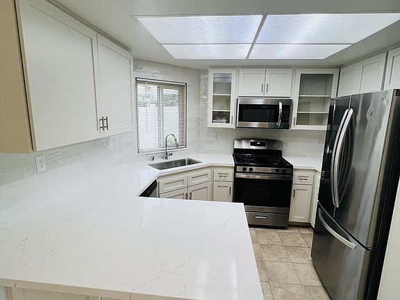 Beautifully Upgraded Single-Story 2 Bedroom, 2 Bath Condo in Laurelwood Corona Welcome to the desirable Laurelwood Complex in the heart of Corona! This charming single-story end-unit condo features 2 spacious bedrooms and 2 fully updated bathrooms, offering modern upgrades and convenient living in a prime location. Interior Features: Freshly painted throughout with new window coverings Tile flooring throughout the unit for easy maintenance Upgraded modern kitchen with refaced soft-close cabinets, quartz countertops, subway tile backsplash, new stainless-steel sink and faucet New bathroom updates include quartz countertops, new sinks, faucets, toilets, and shower doors New shaker-style cabinet doors throughout Inside laundry room Newly installed water heater New windows Exterior & Parking: Private back patio with vinyl fencing and gated access Attached single-car garage with brand new door, opener, and remotes Additional private parking space Community & Location: The Laurelwood Complex offers a quiet and well-maintained environment conveniently located near shopping centers, schools, churches, and provides easy freeway access. Don't miss your chance to live in this beautifully updated, move-in ready home!