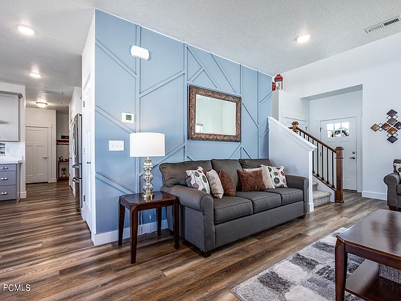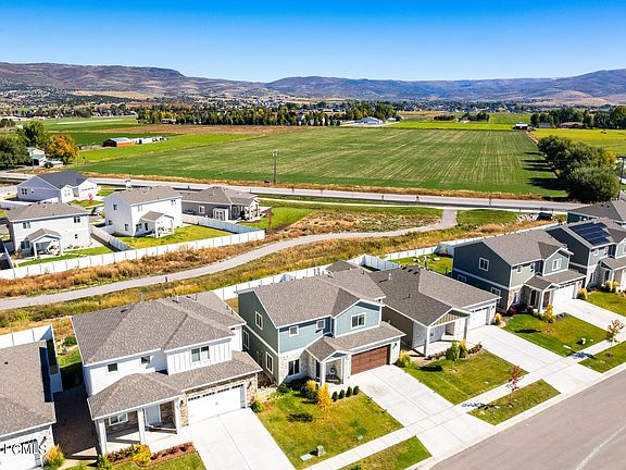 This meticulously cared for and fully upgraded 2021 build is perfect for the family who is looking for new construction! Upon entering the home, the vaulted ceiling, large windows, and open concept floor plan allow for great natural light. A cozy family room with a fireplace leads directly into the dining room overlooking the kitchen, making this the perfect setup for entertaining guests. The homeowners have added additional upgrades such as custom lighting, accent walls, quartz countertops, upgraded appliances including a double oven and custom modern banisters. Unobstructed views from the second floor bedrooms and stairwell allow each room to have extraordinary mountain views. The primary bedroom is complete with custom shelving, a private en suite, and walk-in closet. Abundant storage on the second floor additionally offers convenience. A deck has been built off the back of the home for a family to enjoy peaceful neighborhood and valley views. The painted garage is finished with new epoxy flooring. For outdoor enthusiasts, enjoy the pathway for biking and walking. This trail system coupled with the creek behind the home creates a sense of privacy with no neighboring overlooking the backyard. Walking distance to Timpanogos Middle School, Old Mill Elementary, Heber Valley Hospital, and less than a 30 minute drive to ski resorts, Jordanelle State Park, and less than an hour drive from Salt Lake International Airport, this beautiful home provides a serenity away from busy areas.