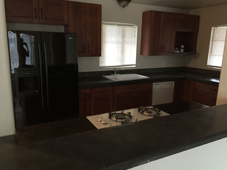 Great central location, minutes to University Medical Center and UA, 1350sq home with A/C, tile throughout, Large kitchen with concrete countertops, fireplace, dishwasher, laundry room with washer and dryer hookup. New paint throughout, Outside storage room with locks, large front and backyard with patio and porch. Carport with lots of parking. Available August 1st. Please do not disturb tenants. 520-401-4855