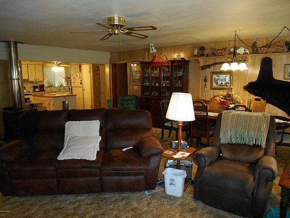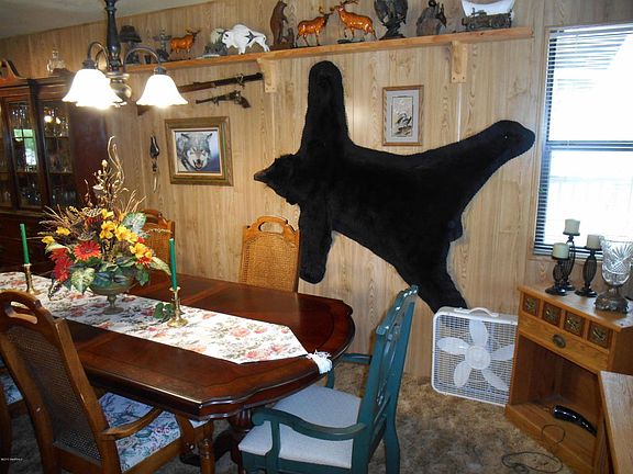 Spacious manufactured home on HUGE lot with three bedrooms, three bathrooms and a three car garage ( on three lots!)This is the house of threes. Each bedroom has its very own bathroom. Open and large kitchen has a breakfast bar and a kitchen island. Lots of covered deck and ample room for parking and an RV. There is a den or bonus room and the home is being sold mostly furnished. Very nice cabin in the woods of Pinewood Country Club!