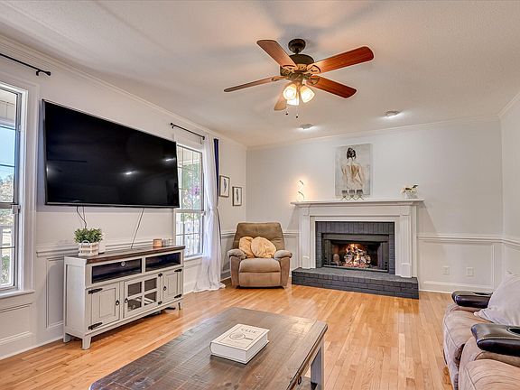 Walking up to the front of the house, take time to relax on the large covered front porch. As you enter the foyer, you'll notice the hardwood floors and a spacious living room featuring a cozy brick fireplace and tons of natural light.