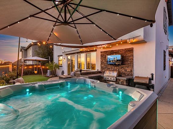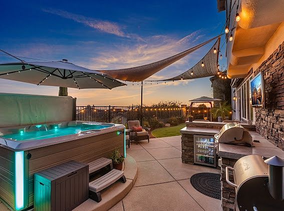 Incredible OCEAN VIEWS from Cardiff, to the downtown San Diego skyline! On clear days, views all the way to Mexico. Watch summer Sea World fireworks from your backyard or master bed. Amazing privacy throughout the house as well. Great family home in San Elijo Hills featuring premium porcelain hardwood look tile flooring throughout, gourmet granite kitchen, S/S appliances & large open floor plan boasting 2,182 esf, 3 Bd/2.5 Ba. Upstairs you will find 3 bedrooms, including the laundry room, spacious master with walk-in closet & separate tub/shower and ocean views. Enjoy entertaining in the separate living/dining areas, cozy family room w/ fireplace OR the spacious backyard w/ outdoor kitchen, bar, jacuzzi & artificial turf. Bi-weekly gardener included. Equipped w/ SOLAR to help with electricity bills, Nest thermostat, EV hookup can be provided for minimal charge, tankless water heater & huge 300 sq ft tandem 3rd car garage. Retractable awning and multiple shades over yard. Award winning Double Peak K-8 school! * * San Elijo Hills--Community includes dog park, ball parks, soccer field, picnic area, playgrounds, dog park, community center. .. and all are within walking distance. Enjoy the shops, brewery and eateries along with 18 miles of trails. Owner pays sewer, trash & bi-weekly gardener. Tenant pays water, electricity & gas. No smoking, certain pet breeds.