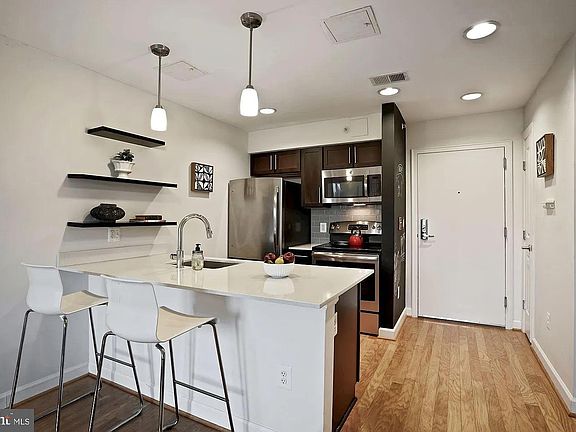 One-bedroom condo on the vibrant H Street corridor, for rent by owner! Includes a reserved parking space. Available for immediate move-in. The unit: - One-bed, one-bath unit on the fifth (top) floor of a 16-unit condo building. - Large south-facing windows / juliet balcony get natural light all day and offer a private, quiet view of the Capitol Hill treetops and neighborhood. - Bedroom features a large closet with plenty of storage space. - Kitchen features a breakfast bar, GE stainless steel appliances, subway-tile backsplash, and quartz counters. - In-unit washer/dryer. - Central heating and air conditioning. - Hardwood floors, carpeted bedroom. The building: - Unit includes a dedicated off-street parking space in a parking lot behind the building. - Built in 2015, 1115 H Street is a 16-unit condo building with an elevator, fob entry, and buzzer system. - LEED certified building with low energy costs. - Green roof deck with tables and chairs, one level up. The neighborhood: - Located on the 11 block of H Street, you'll have easy access to plenty of restaurants, bars, and shops. Toki Underground, &Pizza, Maketto, Bullfrog Bagels, Copycat Co, The Queen Vic, Ben's Chili Bowl, and more are all within two blocks away. - Aldi is 3 blocks away and Whole Foods is 5 blocks away. Giant, Trader Joes, Safeway, and Union Market are also within walking distance. - Free H Street trolley to Union Station stops on 8th and 13th, and several bus routes into downtown stop within a few blocks, including the X2 right across the street. - 10-15 minute walk to Gallaudet University. - 25-30 min walk or 10-15 minute bike ride to the Capitol. Available for immediate move-in. Water and garbage included, renter pays electric. Dedicated off-street parking spot included. Security deposit due at signing. First month's rent and $200 building move-in/admin fee due by lease start date. Renter's insurance required. Pets allowed on a case-by-case basis with owner approval.