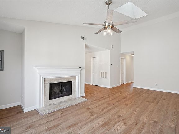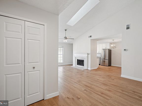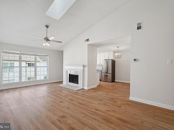 Strikingly renovated, sun-filled, top-floor 2BR/2FB garden condo with vaulted ceiling and open floorplan. This unit is located in Fox Chase at Exeter where only minutes away, you can discover the charm of historic downtown Leesburg with its quaint boutiques, sidewalk cafes, and bars and enjoy the convenience of all the restaurants and retail of nearby shopping centers, anchor stores, and premium outlets. All new custom painting, luxury vinyl plank flooring, and lighting fixtures throughout. Completely redone kitchen and remodeled bathrooms. Foyer entrance with coat closet leading to formal living room with soaring vaulted ceiling, skylight, ceiling fan with light, and gas fireplace with marble surround and wood mantel; renovated kitchen with new 42-inch cabinets, granite countertops, stainless appliances, and pantry closet; separate dining area off of kitchen with designer chandler; primary bedroom suite with walk-in closet and double-door closet; remodeled full bath with new flooring, granite vanity, vanity light, and bath fixtures; second bedroom with double-door closet; refurbished hall full bath with new flooring, granite vanity, vanity light, and bath fixtures; separate laundry/utility room with full-size washer and dryer and ventilated shelving; one assigned parking space (#82) and plenty of visitor parking. Fox Chase at Exeter is adjacent to Carrvale Park, a serene 4-acre open-space public park, and provides many other neighborhood amenities including a community pool facility, The Exeter Stone Clubhouse, basketball and tennis courts, athletic fields at Robinson Park, and over 2 miles of paved walking trails. Additionally, the Ida Lee Park Recreation Center is a full-service recreation facility, offering a fitness center, two indoor pools, a full-size basketball court, racquetball courts, a banquet hall, childcare, and a full range of fitness, recreation, and sports programs and classes.