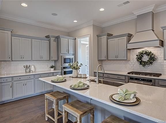 New Construction, Move in Ready, Priced Right! Lovely Estate home in gated community on a large, level lot. Marvin Ridge School District. Open floor plan perfect for entertaining. Large covered back patio for perfect for additional outdoor living. 1st floor: owner's retreat with vaulted ceiling and luxurious spa-like bath, guest suite in private alcove, 2-story great room, gourmet kitchen with butler's pantry, dining, drop zone and a private study. Upstairs has 3 bedrooms, 3 baths, bonus room and a large loft. Flat backyard overlooking the pond. Perfect for putting in a pool. Upgrades include painted gray cabinets, wood flooring in office and hallways, large kitchen sink, tankless hot water heater, additional windows added in master bedroom and additional recessed lighting added throughout the home.
