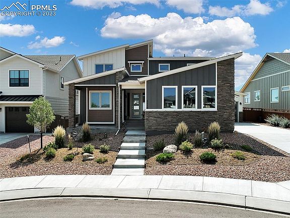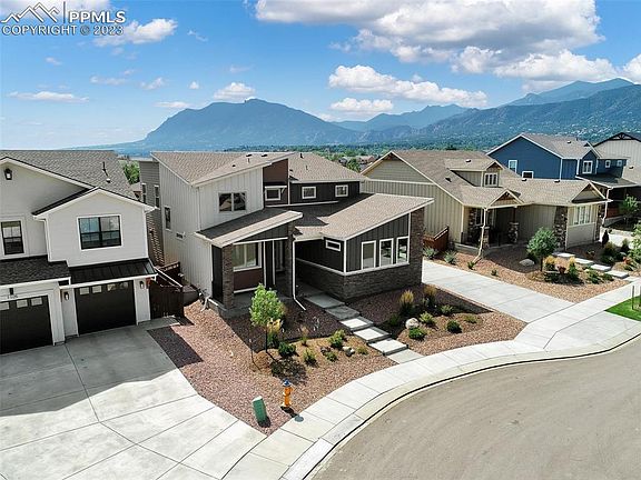 Pristine Perfection!!!! World Class Adamo Homes Model Home tucked away in a private Cul-de-sac! 4 Bedroom, 3 Bath and 4-Car Garage. Only one of it's kind in Gold Hill Mesa! This home has a true, detached 4th car garage that is oversized and stunning. Amazing Views from every window. Front and East windows view the City Lights. West side Mountains. South side view Cheyenne Mountain and more Downtown lights! Gorgeous front landscaping maintained by the HOA. Fenced back yard with very low maintenance landscaping and Turf! The front welcomes you to the covered front porch and cul-de-sac peace and privacy. The main level has a large 4th Bedroom/Office with a full bath. The Grand Room has a stunning extra wide gas fireplace shared by the Kitchen and Dining. Classy cabinets with Soft Close doors and drawers. Quartz counters with custom home level appliances. Gas Range-top for the true chefs. A Huge walk-in pantry close by. Walk out to your covered back patio to enjoy the Southern sun. Enter from the garage through your custom cubbies to hold coats, shoes etc. Upstairs is a large loft/tv room, an oversized laundry, 2 bedrooms and a bath. The Retreat Master Suite has stunning mountain views. Relax in your 5 piece bath with a slipper tub, Walk-in shower, double vanity and huge Walk-in Closet. There is a full unfinished basement with plenty of room for 2 more bedrooms, bath and recreation area. This home has it all!
