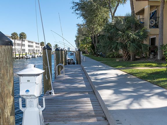 40ft BOAT DOCK - Boater's Dream Home! This 1,200 square foot 2 Bedroom/2 Bathroom condo has a deeded Boat Slip which includes Marine Power Pedestals for electric, water and dock lights along the canal side.The Boat Slips are located on a sheltered canal with direct access to the Intra-Coastal Waterway. The Boat Slip is located right outside the condo where you can sit on your private covered balcony overlooking your boat. The condo also has a deeded Garage Space and a deeded Assigned Parking Space. The kitchen boasts granite countertops, wood cabinetry, stainless-steel appliances, pantry, and a seated countertop bar for casual dining along with the open dining area. The first floor has a stacked washer and dryer, and the family room has sliders leading