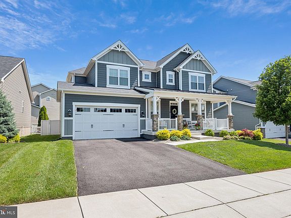 This stunning home has been meticulously maintained by the original owner who added all the major upgrades to their build and chose the finest materials and design features. The premium front elevation with welcoming front porch will delight you with its durable epoxy surface and views. The interior is fabulous and has a modern floor plan that you will love. There is a main level office with French glass paneled doors at the entrance and a gracious foyer opening up to an incredible open living area filled with natural light and featuring a gas fireplace with stone surround, top of the line hardwood floors, recessed lighting, crown moldings throughout, gourmet kitchen with large center island, gorgeous countertops, quality cabinetry, subway tile backsplash, all stainless appliance package including double wall oven, and walk-in pantry. The garage has an upgraded epoxy floor, extra storage space, and leads into a mud room perfectly designed to flow into the rest of the home. The conservatory room is open to the kitchen and leads out to a terrific oasis of a fully fenced backyard that includes maintenance free decking, extensive hardscape with built in firepit and plenty of lawn space to run around. All around the home you will find a multitude of specimen plantings adding to the charm of this property. The shower in the primary bath has been recently upgraded with incredible tiles and glass door and has two vanities. There is a separate laundry room upstairs as well. The basement is amazing and features a full wet bar with wine fridge, quality cabinetry, and glass tile backsplash. The board and batten walls create an eye pleasing area to relax in. There is also an extra room with glass paneled French doors that can be used as a playroom, exercise room or office. Shows like a model home! All in coveted Tuscarora Creek.