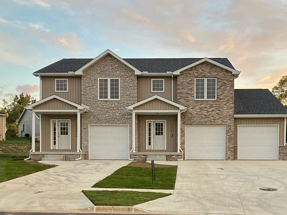 This Townhome has an oversized single car garage with dedicated electrical line in garage for electric auto charging. Luxury vinyl planking throughout the main level. Beautiful kitchen with light cabinets, full GE stainless appliance package and quartz countertops. Floor to ceiling stone fireplace in living room provides a fantastic focal point and creates a cozy atmosphere. All bedrooms upstairs including primary with walk in closet and attached bath. Laundry upstairs for your convenience. Full unfinished basement with egress window and plumbing for additional bathroom. Ready for you to finish at your leisure. This highly efficient home is full of upgrades including 2x6 exterior walls, casement windows, dual HVAC units to provide premium comfort across all levels while reducing utility costs. Ceiling fans in all bedrooms and living room. Low maintenance yard includes a large patio and vinyl fence between units to create privacy. Conveniently located local shopping, dining, community trails, schools, and a quick drive to Peoria and Bloomington. (Including 30 minutes to Rivian.). ***** The raised counter in the kitchen will be lowered to counter height and the cabinets are a dark color.