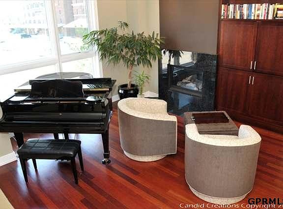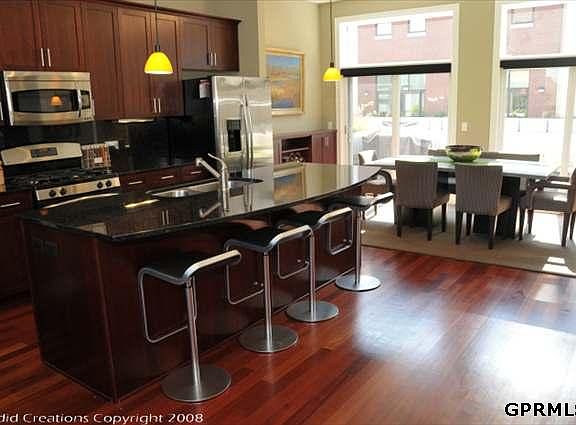 AMA. Cherry wd flrs, travertine tile, nickel fixtures are just some of the high end finishes in this contemporary condo overlooking the Old Market. Granite cntrs, cherry cabs, SS appls in kit. Gas FP & cherry bookcase in fam rm. Din rm includes W/O to lg deck w/gas grill hookup. W/I closet, full bth w/wrlpl tub, shower & dual sinks in mstr ste. Rooftop deck w/gas grill hookup & a great view. Add features include a whole house audio sys w/control pads, sec sys.