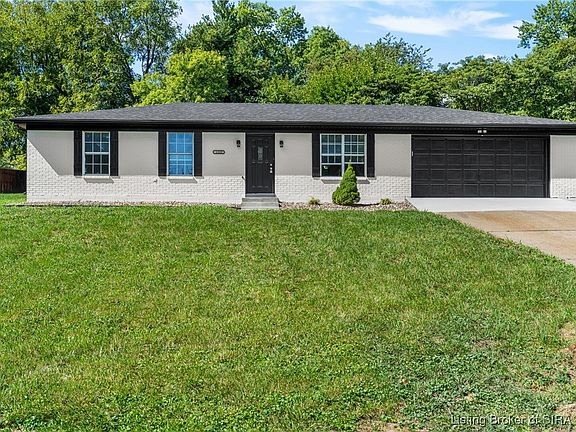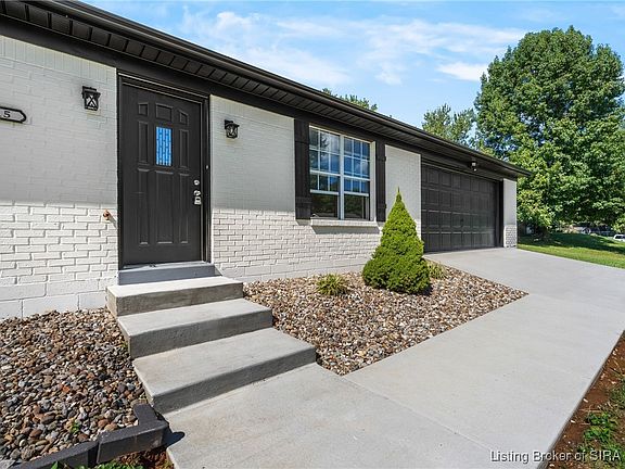 Price Improvement! Newly remodeled and move-in ready, this 3-bedroom, 2 bath all-brick ranch with a 2-car attached, oversized garage offers 1,286 sq ft of stylish one-level living in the desirable Floyd Central school district. Every major item has been updated, including a brand-new roof, energy-efficient windows, exterior and interior doors, and fresh paint inside and out. The interior features all new LVP flooring, a modern kitchen with new cabinets, quartz countertops, and appliances, plus beautifully refreshed bathrooms. The thoughtful floor plan flows seamlessly, creating a light and bright atmosphere throughout. Outside, enjoy a new 35ft extended deck overlooking a spacious half-acre lot on a quiet dead-end street — perfect for entertaining, gardening, or simply relaxing in your own private retreat. With timeless curb appeal, quality craftsmanship, and move-in-ready finishes, this home combines the best of modern updates with classic brick construction in Summerfield Village subdivision with no HOA. Don’t miss your chance to own a fully renovated home in a prime location close to schools, shopping, and all that Floyd County has to offer!