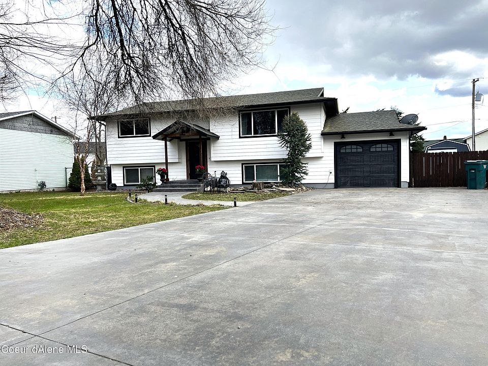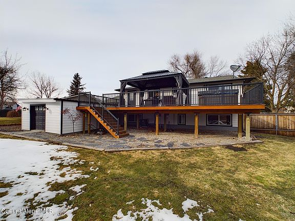Cleverly re-designed 3 bed, 2 bath, split level with high end upgrades and newer Hardy Plank siding. Located on an attractively landscaped quarter acre within minutes of I-90. A large open floor plan includes a custom knotty alder kitchen with granite countertops, large island with abundant storage, and stainless steel appliances. The main level suite is complete with his and hers California Closets, a multi entry master bath with a dual vanity, an oversized walk in shower with floor to ceiling tile and a pebble floor. Lower level has 2 bedrooms, 1 bath with a deep soaking tub, and a fun family room with new carpet, recessed lighting and tongue and groove. Huge stained concrete driveway and sidewalk. Massive Trex rear deck is great for entertainment. Relax in the shade under the 12x16 hard cover gazebo while you Bar-B-Que on the natural gas Weber grill. The fenced back yard has large gates to allow for parking of your RV w/220 hook up. 12x20 storage shed with a loft. County and No HOA