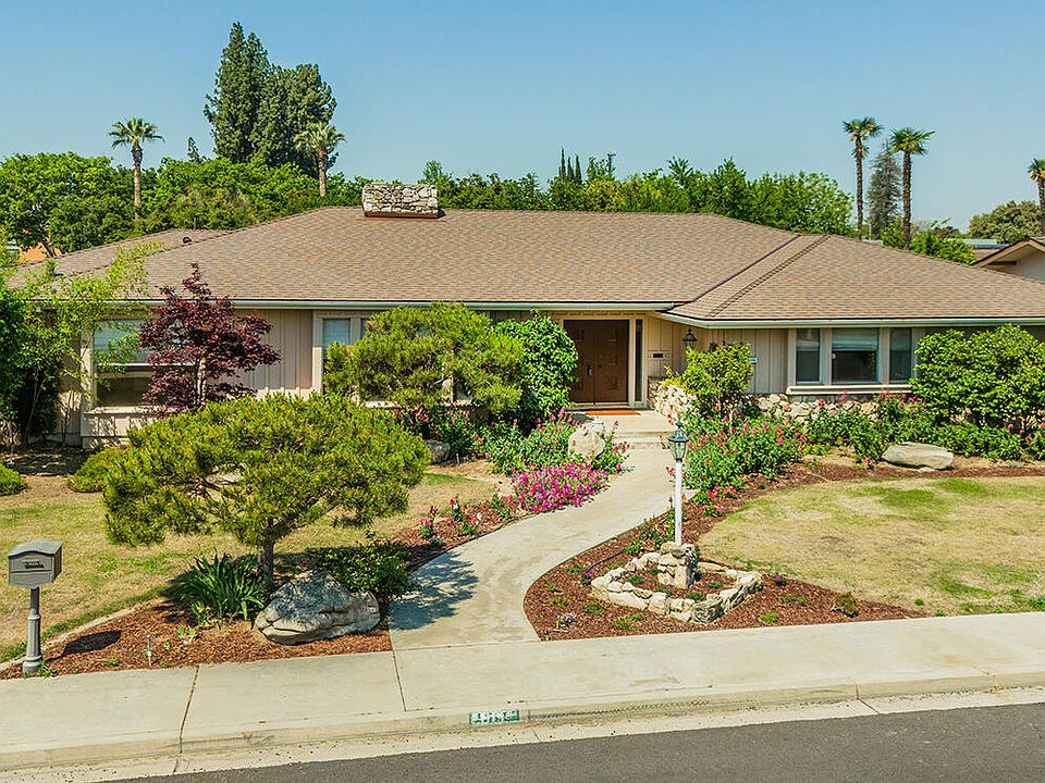 This classic, Mid-Century custom ranch, built by its owners in 1965, has all the nostalgia and craftsmanship you could dream of. On a large, sweeping corner lot, with extraordinary room sizes and an oversized detached garage, this home anchors a beautiful, established neighborhood. Enjoy the brand-new roof and floor coverings. The formal entry opens to bright, spacious living and dining rooms to start this amazing tour. Two fireplaces, an elegant living room focal point, the second, a rustic stone masonry hearth making the family room, with its vaulted ceilings, the heart of this home. This room opens through broad sliding glass doors onto an expansive covered patio and backyard beyond. The kitchen has ample counter space plus island with breakfast bar separating the casual dining area from kitchen with storage you rarely see in today's homes. Don't miss the built-in desk and buffet countertop with display cabinets above and storage below. Roomy butler's pantry and laundry with more storage for your convenience. The 4 bedrooms are oversized, 2 with beautiful original oak hardwood floors, 2 have brand new carpet. The fact it has 4 large bathrooms is not a typo! This home is well worth your visit. Call to set your appointment today.