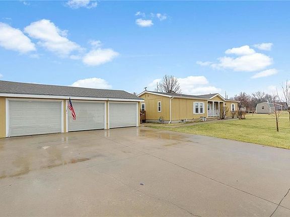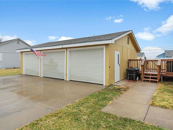 A perfect home for those looking for a simple & practical home w/all the basic essentials - A separate Mstr. Ste. w/walk in closet on opposite end of the other 2 Bdrms., both w/walk in closets too, huge open living area-kitchen w/corian counter/sink, living room & dining, a laundry room & bonus mud room + an amazing detached 3 car garage, a deck, a fenced in backyard for the doggos and kiddos. Newer roof and has in place a maint. service agreement for HVAC. Room measurements are approximate. Garage door shows wet.