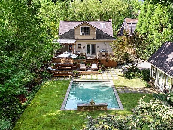In Virginia Highland and with almost half of an acre, this home features a stunning oversized flat backyard retreat with saltwater, heated pool, fountain and artificial grass around the pool area. One Car garage built in 2012 could also be used as a pool house for entertaining. Oversized tiered deck is perfect for dining al fresco. Screened porch by the front door, open layout with living room with fireplace and high ceilings. Separate dining room adjacent to the kitchen that offers granite countertops, SS appliances and kitchen island. 2 bedrooms and one bath on main. Upstairs loft area, opens to the living area, perfect for a home office or sitting area. Full bathroom and a bedroom. Unfinished basement. Sidewalks and walking distance to parks and restaurants. So much charm!