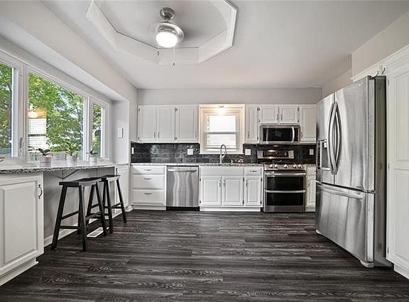 Affordable living in New Mark! Enjoy a completely remodeled and clean home with large backyard and deck! New high efficiency windows, door, vinyl plank flooring, newer carpet & paint. No popcorn ceilings! Updated kitchen & bathrooms with granite counters and subway tile. Stainless steal appliances all stay! Enjoy a vaulted entry and living room with brick fireplace! Basement ready to be finished! New Mark is a lovely treed neighborhood that includes swimming pool, tennis courts, pond and club house!