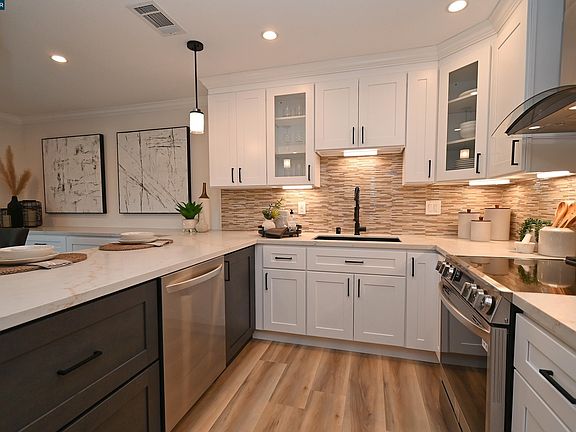 PRICE REDUCTION!!! LOCATION, LOCATION, LOCATION!! ou don't want to miss this one! Beautiful entry as you walk between two large grassy areas to your front door. Relax on your deck swing while watching the trees and hills of Rossmoor turn their beautiful colors of the season!! All new remodel with shaker slow close cabinetry, peninsula with waterfall, wine cooler, 4-door refrigerator, all new appliances, over the stove pot filler, dual pane windows and sliders, tiled back deck, electric fireplace, TV cable ready, baseboards, crown molding, bedroom fans with remotes, 2-panel doors throughout, Bosch stackable washer/dryer, wall medicine cabinet, extra storage at front door and back deck. Located directly across from Gateway Clubhouse and walking distance to the Tice Valley Gym and Gateway. Carport has room for additional storage. This is a must see!!! Rossmoor is a senior community