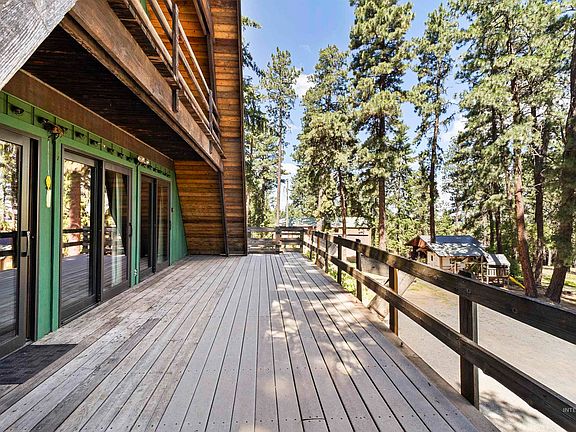 Just under 10 ridgetop acres in the big timber 5 minutes from town on Paradise Ridge with a stocked pond! The 3000 square foot home perches atop the ridge on the property. With lots of big open beams and custom wood touches such as tongue and groove ceilings, and wood floorings. The main floor has a kitchen with pantry and opens to the living room with rock fireplace which adjoins a large deck with big picture windows, bringing the outside in. There is also a master suite with en-suite 3/4 bath. On the top floor are two large bedrooms, both with great views and a 3/4 bath. In the basement is a with a walk-out den/office, a large storage/craft room, 3/4 bath and 1 car attached garage. There is a detached 2 car car cover as well as a three bay shop with a loft and an enclosed/insulated work room with loft. Property is served by an 11 GPM well. Dotted with 100+ year old towering pines and firs, an orchard, and with a commanding location over Moscow, this property is most locals dream location.