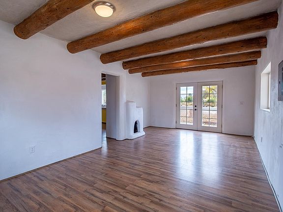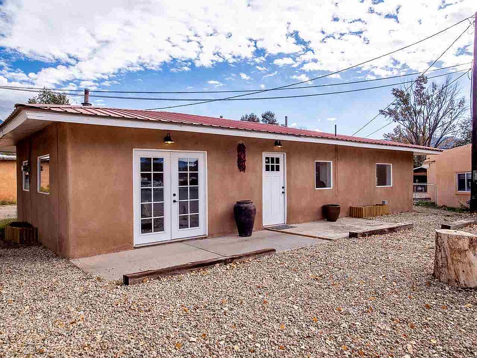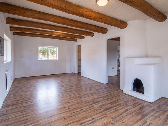 Step inside this cozy and affordable home full of charm. Vigas, thick adobe walls and bull-nosed edges can be found throughout. Upon entry, you will find a space that is ready for your creative vision! The kitchen area has charming cabinets and is setup for gas and electricity so you can easily add appliances of your choosing. There are two bedroom located on the east side of the house and a single, newly renovated bathroom has been finished with grey tile and a stand alone vanity. There is also an addition flex space, perfect for a living area. Located off the flex space and the main entry area is a laundry closet with washer and dryer hookups. 1115 Paseo del Pueblo Norte is located just minutes away from Cid's Grocery and KTAOS solar radio center. Since the home is located on the north side of town, getting to the Taos Mesa Brewery, Arroyo Seco, and the Taos Ski Valley is just a short drive!