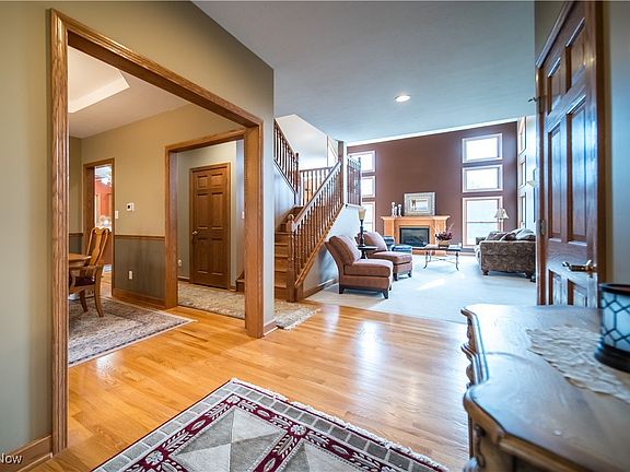 Amazing home on 5.01 acres in Suffield Township. Custom built 4 bedroom, 2 full, 3 half baths with large 1st floor master suite. From the generously sized foyer to the office that could be a 5th bedroom, to the living room with a soaring ceiling and gas fireplace to the dining room and into the large eat-in kitchen with a spectacular view of the pond and stone patio. (All appliances stay). There is a walk-in pantry and laundry room off the kitchen making cooking and laundry a breeze. The family room is nestled beside the kitchen offering another charming place to gather. Go upstairs to a loft that is a great place for another home office of study area and 3 more bedrooms. The entire home has beautiful woodwork and solid 6 panel doors. The lower level has a half bath, a lovely bar area and a nook for tables or playing cards as you come down the steps. It is simply beautiful. Lots of room for storage also. The attached garage has loads of space and the detached garage gives you ample room for whatever you choose. The stocked pond and wooded view are serene and can be enjoyed by a stunning stone patio with stone wall. Every detail of this home has been carefully thought out by these sellers. What an special place to call home.