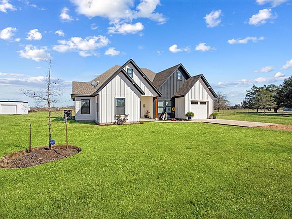 Discover the perfect blend of modern charm and country serenity in this 2,368 sq. ft. home, built in 2022. Nestled on 2.5 acres, this 3-bedroom, 2-bathroom home is designed for comfort, style, and entertaining. Step inside through the welcoming foyer with an accent wall and warm tones, setting the stage for the inviting atmosphere throughout. The open-concept layout provides an effortless flow, perfect for hosting and gathering with loved ones. The kitchen is a showstopper, featuring a spacious island, a gorgeous backsplash, and beautifully coordinated granite countertops carried seamlessly throughout the home. A walk-in pantry adds extra convenience, making this kitchen both stunning and functional. The spacious living room boasts a vaulted wood beam ceiling and an abundance of natural light, creating a cozy yet open feel. The primary suite and additional bedrooms offer plush carpeting, while tile flooring runs throughout the rest of the home for easy maintenance. Every detail in this home has been thoughtfully designed to enhance both style and comfort. Outside, the covered porch invites you to relax and take in the peaceful country views, while the expansive 2.5-acre lot provides endless opportunities—whether for a garden, animals, or outdoor recreation. This home truly lacks no detail you’ll feel it from the moment you walk in. Don't miss your chance to own this stunning Texas retreat!