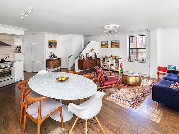 Nestled in the tree-lined heart of Windsor Terrace, #301 at 1115 Prospect Avenue is an impeccably laid out corner triplex condo, boasting 1,311 square feet of interior space, two bedrooms, one-and-a-half bathrooms and a top-floor extra bedroom/home office/TV room with a wrap-around terrace...and the option of your very own private parking spot! Light pours into the oversized living room from south and western exposures; the open kitchen comes fully equipped with high-end appliances, tons of counter and cabinet space, Corian countertops and Porcelanosa backsplash. There's also a powder room on the first floor, along with an enormous coat closet. The second level has both bedrooms, along with a full bathroom, W/D and yes, even more storage. And the top level is the perfect cherry on top, giving the lucky owner maximum flexibility for whatever their needs may be. Bonus perks include climate control via PTAC units in nearly every room, multiple styles of gorgeous hardwood floors, additional outdoor storage shed, Coriander marble windowsills in living room, skylight, two built-in bookshelves and carpeted stairway. Prospect Park Mews is a 55-unit condo encompassing two separate buildings. The F/G trains are just five blocks away. Private outdoor parking is $160 per month; there's currently no wait list. Outdoor bike storage Is available at no cost. Please note that this is a two-flight walkup. Don't miss your chance to be the proud new owner of this glorious apartment! Contact us today to arrange a private showing!