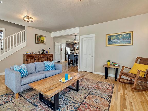 Welcome to this wonderful 4 Bedroom/2.5 Bathroom home boasting 2000+ sqft of living space. With tasteful finishes & a thoughtfully designed layout, this home offers a warm & inviting atmosphere, complete with hardwood floors & gas fireplace. The central kitchen includes a granite island, gas range, stainless appliances & pantry & opens nicely to the living & dining rooms, as well as the outdoor patio--great for entertaining! A spacious Primary Bedroom Suite is located on the main floor for added convenience. Upstairs, you'll find 3 additional Bedrooms, full Bathroom & a generous Bonus Room with Mt Adams view. Modern amenities include solar panels, forced air gas heat, A/C & an on-demand hot water heater, ensuring year-round comfort & energy efficiency. Step outside to the inviting outdoor spaces, including a covered front porch, south-facing backyard, patio, fire pit, hot tub & fenced yard. A 2-car attached garage offers convenience & storage space. Enjoy this centrally located, move-in ready home situated in a quiet neighborhood close to the Westside Trail & all Hood River has to offer! More info: https://hd.pics/x1195050