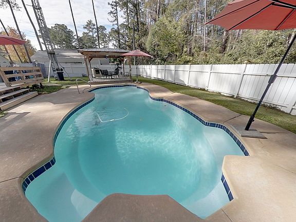 A backyard oasis is just what the doctor ordered! Saltwater pool, large deck and gazebo make this 4 bedroom / 3 bath home the best in the neighborhood. With 2767 sqft, this home has it all. Living room, kitchen, main hall, pool room and bath and stairs have a been painted, a 2 car garage, large RV port, separate 2 carport with storage area, irrigation system and security system plus security cameras to watch the entire property, two large living areas, a back entrance to a full bath from the pool area, pool is privately fenced with plenty of room to hang out, upstairs you will find 2 large bedrooms and a full bath, the roof, water heater and HVAC system are all less than 5 years old. Come take a look and see what all this home has to offer.