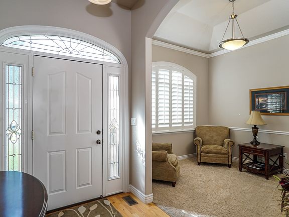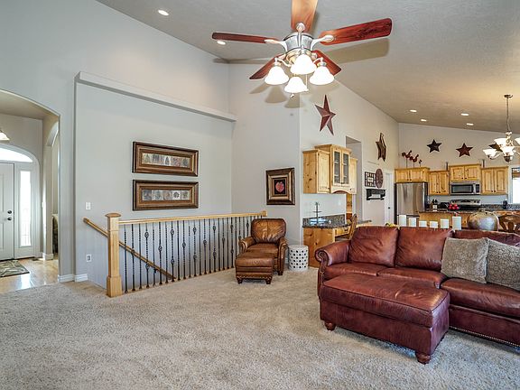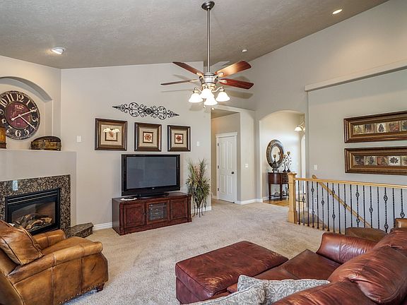 Super nice Rambler w huge open floor plan and tall ceilings w vaults. 5 bedrooms, 3.5 bathrooms, large family room w kitchenette/ wetbar in basement, 2 fireplaces, 4 car garage, covered deck w large patio, and water fall on a huge west facing lot. Home is loaded with upgrades, come and see....