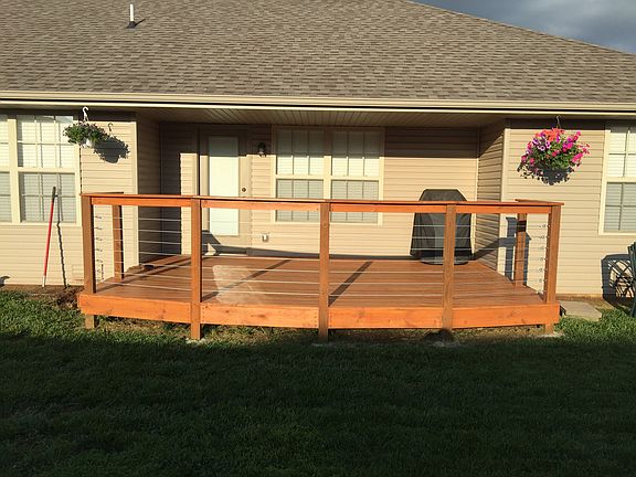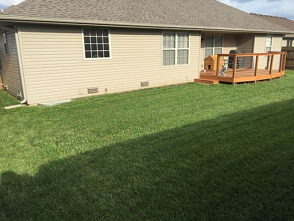 OK for realtors to contact. Strasbourg Estates Subdivision Built in September 2012 with a little over 1600 sqft. 3 car garage, featuring 4 bedrooms and 2 bathrooms. Hardwood, tile, and carpet flooring, jetted tub, his and her closets in master bathroom and walk in shower with double vanity. 10 foot ceiling in living room. Separate laundry room to keep quiet. We are the original owners and have done several upgrades to the home. We have genuinely cared for this home and taken very good care of it. Here is a list of all of the upgrades! Own cedar mailbox on a well groomed lawn Painted-epoxy coating on entire garage floor Extra fluorescent lighting in garage Separate Furnace and Thermostat for heating the garage Shutters Water softener system Ultra high efficiency Dual-Fuel heating and cooling system Flooring and lighting added in attic for storage Privacy fence Landscaping in front Large 12'x17' curved deck Living room is wired for surround sound speakers inside the wall Vapor barrier installed in the crawl space Faux wood blinds on all windows Ceiling fans in all bedrooms Wifi thermostat - Adjust from your phone We are also giving the option of leaving the house furnished for extra money depending on what pieces of furniture/appliances you'd like. Please call 417-766-0835 to ask questions about the home or to see it.