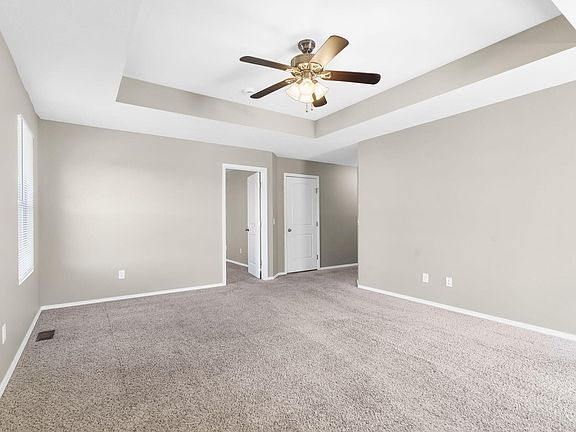 Welcome to this single-story gem in Springfield, MO! Featuring an inviting open-concept layout, this home is designed for both relaxation and entertaining. The spacious living room seamlessly flows into the kitchen, where you'll find a convenient bar area perfect for casual dining. The kitchen comes equipped with sleek all-black appliances, offering both style and functionality. The primary bedroom boasts elegant tray ceilings and an en-suite bathroom with a shower/tub combo, plus a generous walk-in closet. Two additional bedrooms share a full hall bathroom, providing ample space for family or guests. Step outside to the backyard with a cozy patio for your enjoyment. Plus, enjoy the convenience of quick access to I-44 and Rutledge-Wilson Farm Park, offering plenty of recreational opportunities just minutes away. Don't miss out on this move-in-ready home.